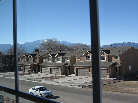 New attached single family townhome with Pikes Peak views from the master bedroom. This home is bright with an inviting open floor plan. It has 3 Bed, 2.5 Baths, 2 car deep garage with door opener and wireless keypad, stucco exterior, wood flooring in entry, kitchen and dining room. Stainless steel appliances, maple cabinets, tile in the master bathroom with dual vanity sinks and a walk-in closet, 50 Gallon Water Heater, Easy to maintain landscaping with backyard fencing. Conveniently located to main roads, shopping, parks and schools. Available August 1st. Must have minimum 640 credit score and be able to maintain a yard. No smoking.