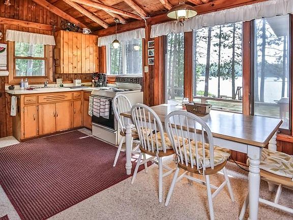 GORDON LAKE CABIN - surrounded by 3+ private acres with 133 ft of "stick your toes in the sand" frontage, level to the shore! Log sided seasonal cabin has 1 bedroom, 1 bathroom & great room that features tongue & groove paneling, beamed ceilings, access to an enclosed porch & lake views from just about every window. Spacious wrap around lakeside deck provides southern views of the lake; an invitation for morning coffee. A detached 28x34 half log sided garage has add'l living quarters for guests, full bath, washer/dryer and its own well. The rest of the garage is spacious enough to allow for storage, vehicles or summer/winter fun! Another 1 car half log sided garage provides for toy overflow. Gordon is a private, no motor lake & provides a peaceful, secluded setting to let you enjoy the Northwoods wildlife & sounds. Even comes with a paddle boat to start enjoying the water on day ONE! Don't miss the opportunity to start your own family traditions!