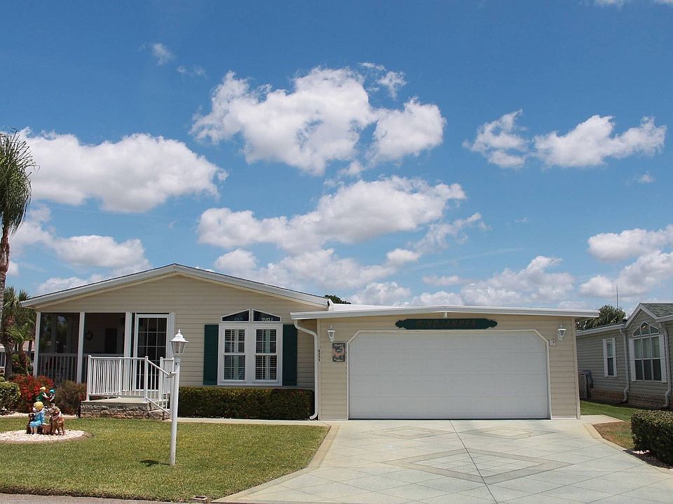 This 3 BR 2 BA 1596 SQ FT Home is very well maintained. Unfurnished, New thermopane windows throughout, It has an enclosed and AC Florida Room on Back of home. Back Covered patio, Freshly painted throughout. Upgraded cabinets, and counter tops, Wood Floors And carpet in Bedrooms. Upgraded stainless steel appliances. Home is on a corner lot and yard is beautifully landscaped. Golf Cart Included.