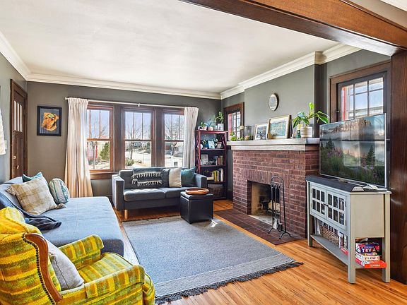 Desirable Classic 1920's Craftsman Bungalow. An architectural gem located on corner lot on quiet street. Enter the front door into a spacious sunny three season porch for warm weather relaxing with a friend or a book. Beautiful paneled inner door enters into living rm, the center piece being a Wood burning brick fireplace with oak mantel flanked by windows, adjoining light filled dining rm. Hardwood floors throughout. Birch cabinets and new quartz countertop in nice sized kitchen. Traditional flr plan with two bedrooms on the main & full ceramic bath. Huge open bsmt with areas for workshop, exercise & laundry. Excellent potential to be finished. Insulated attic space for additional cold storage. New front cement steps, new furnace and AC 2022, some new windows 2019, new dryer. One car garage with attached storage shed. Wood fencing for dog and privacy. Quiet street with mature trees. Easy access to all things everyone loves about Minneapolis! Efficient living in the heart of it all.