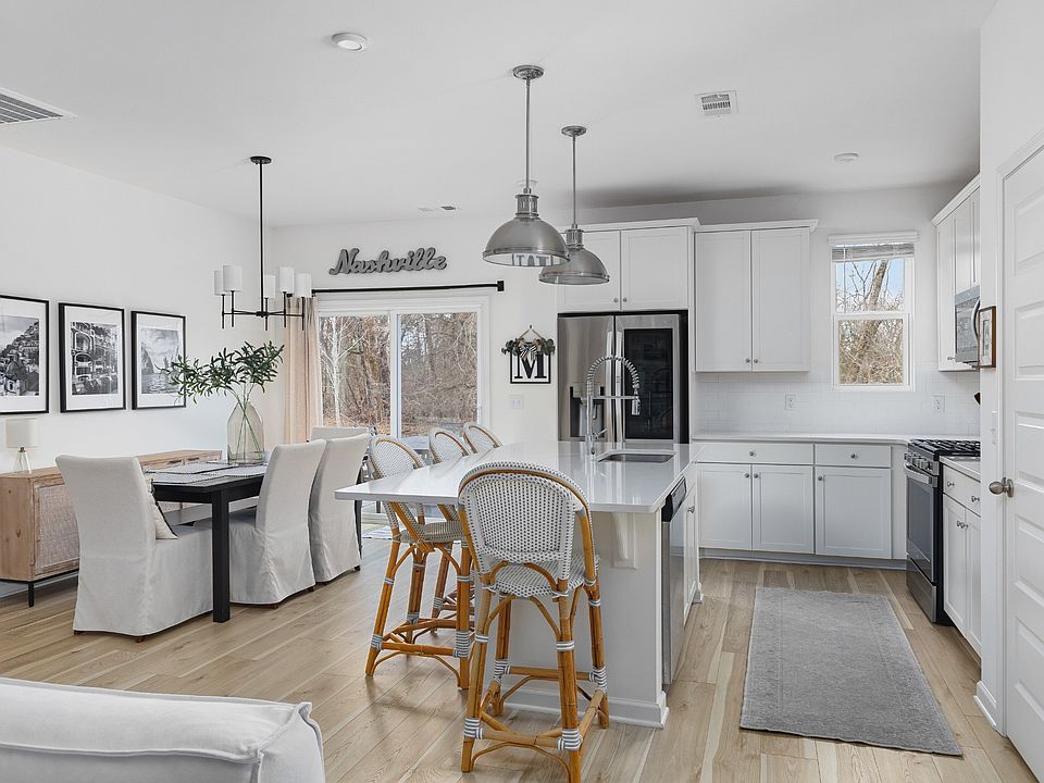 Like-new home by Beazer in Magnolia Farms! All new light fixtures, gas fireplace, quartz countertops, stainless steel appliances, separate tub & shower in master bath! 3 bedrooms on main floor; upstairs has large bonus room, 4th bedroom and full bath. Enjoy the beautiful outdoors on your patio with a yard that backs up to wooded area with no development. Private & Quiet!