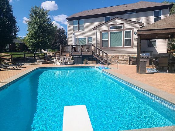 Gorgeous Fischer Whitman plan in Glenwood Trails in a cul de sac. 4 beds/ 2.5 baths. So many features including limestone cultured stone veneer, arched doorway, expanded garage w/ 4 ft bump out, 9 ft ceilings, gourmet kitchen w/ upgrade cabinets, island, & hardwood floors. Sunny breakfast room, 2nd floor laundry & study. All bedrooms have walk in closets & ceiling fans. Whole house water softener & reverse osmosis system. The back yard oasis includes an 18 x 36 inground pool w/ diving board, 14 x 14 covered pavilion, firepit, deck w/ built in counters & low maintenance landscaping. Back on the market due to buyer financing falling through. Owner/Agent