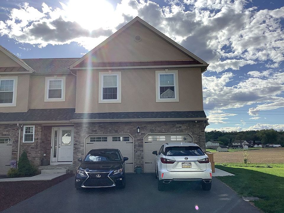 Move-in ready end unit townhouse with 3 bedrooms, 2 full baths, and 2 half baths! Built in 2018, this home is like-new with all the desirable features: a Trex deck, finished basement, hardwood floors, granite countertops, stainless steel appliances, remote-controlled ceiling fans, updated light fixtures, and more. The main floor beams with natural light and boasts an open layout, inviting in you and your guests. Gather around the fireplace in the living room, host dinner parties in the dining room, and prepare a meal in the chef's kitchen, complete with tile backsplash and a center island with seating. This level also includes a half bath and sliding glass doors to the deck - the perfect spot to soak up the sun. Head up the wrought iron staircase to reach the upstairs loft, which can be used as an office, play space, or whatever else you need. Choose any one of the carpeted bedrooms to wind down in; the primary has a tray ceiling, walk-in closet, and ensuite bath with a glass enclosed shower and dual sink marble vanity, while the others share the full hallway bath. The basement has plenty of room for storage and living, and it offers sliding glass doors to the covered patio. Just outside, there's an expansive lawn with a shed. Other features: Central A/C and Forced Air heating with digital thermostat; 2-car unobstructed garage. Located near Whitehall Parkway, Ranger Lake, shopping, and dining, with easy access to Lehigh Valley Int'l Airport, Philadelphia, and NYC! Buyer should verify all information.