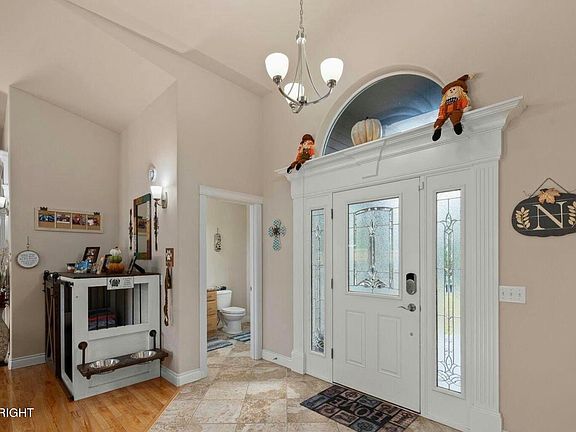 Stunning custom ranch home featuring a bright, open floor plan with in-floor heating, granite countertops, and exquisite custom tile work. The chef's kitchen is a true highlight, seamlessly flowing into the dining and living rooms, complete with a cozy gas fireplace. Enjoy the privacy of a fenced backyard, perfect for outdoor relaxation and entertaining.