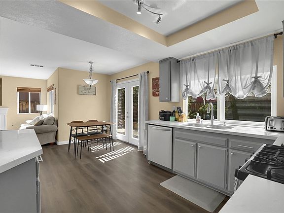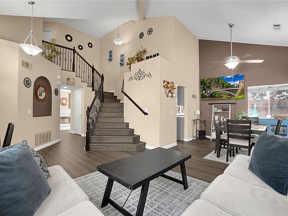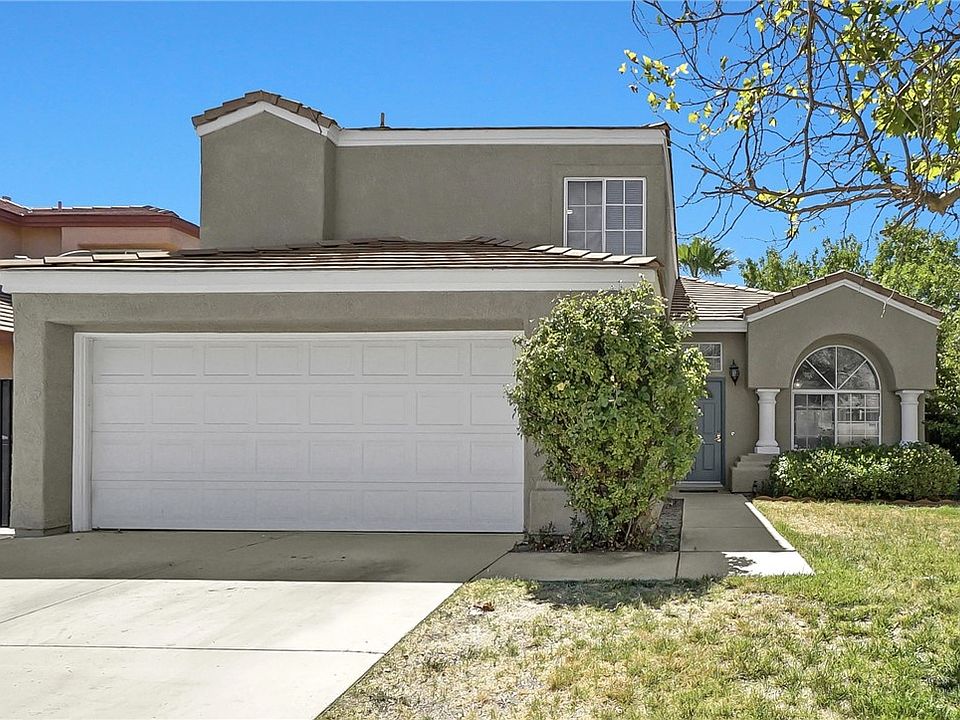 Located in West Lancaster near Quartz Hill amenities, this two-story home offers 3 bedrooms, 2.5 bathrooms, and approximately 1,708 square feet of living space. The main level features an open-concept floor plan with high ceilings and updated luxury vinyl plank flooring throughout. The kitchen has been upgraded with gray cabinetry, white quartz countertops, and stainless steel appliances, and it connects directly to the family room and formal living area.