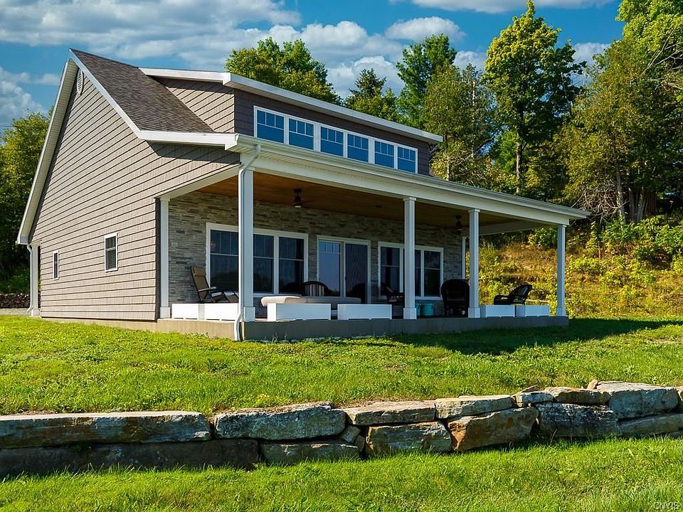 "Modern Lakehouse" on the pristine waters of Clear Lake! Newly constructed in 2017, year-round home, weekend getaway or a turn-key vacation rental! 200 ft of direct water frontage along inland lake (with no high water worries!) 16' x 24' floating dock, a new natural rock seawall. This 1484 sq ft home was constructed with a keen sense of detail, thoughtful planning, high quality materials and stylish finishes. Gorgeous Kitchen with quartz counters, Kitchen Aid appliances, and quarter sawn Oak cabinetry. Stellar 2-bedroom, 2 bath home with open floor plan, cathedral ceiling, expansive windows, one of a kind staircase and a custom gas fireplace surround. Energy efficient radiant heating throughout, even on the outdoor porches if you want to add (612 ft!) to your square footage. Additional attributes include; 11K Generac generator, new 1000 gallon septic, lake well with internal heat line, UV light, water filtration system, on demand HWH, 30 amp camper hook- up, and even a remote control for your WiFi antenna! Everything has been done, just sit back and enjoy this fantastic, low maintenance waterfront oasis boasting the most sought after amenities. Do not miss this rare offering!