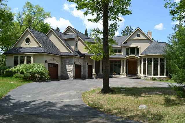 Home at Forest Dunes, over 8500 square feet, 5 bedrooms, 7 baths, home has many custom features, from wood and tile floors to 22' high ceilings in the living room, square footage does not include the full basement that is partially finished or the 3 car detached garage. Situated on 2 lots with filtered views of the 18th fairway and 8th green.