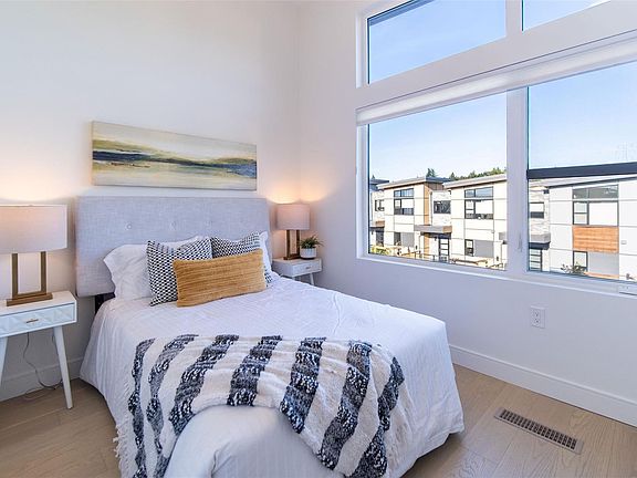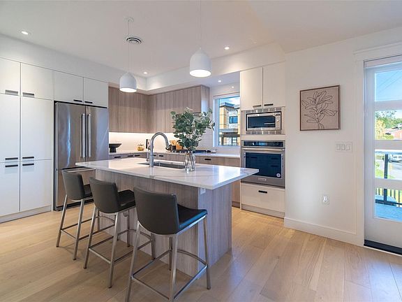 NEW LISTING! Executive end-unit townhome at Paragon Parc, built by award-winning White Wolf Homes. Offering 2,386+ sq ft of refined living, this 3BD/4BA home blends luxury, space & privacy. Soaring rooflines, oversized windows & West Coast design set the tone. Main flr features: 9’ ceilings, gourmet kitchen w/ quartz counters, gas cooktop, wall oven, island, pantry, & deluxe KitchenAid appliances. Open-concept living/dining w/ fireplace, office nook, & powder rm. Stunning primary suite w/ walk-in closets, spa-like ensuite (heated tile, floating vanities, glass shower), + laundry & vaulted ceilings. Lower: media/rec rm, ideal for guests, gym or flex. Add'l features: radiant flrs, remote blinds, EV-ready garage, XL driveway, heat pump, fenced yard & patio backing greenspace. Community garden, kid’s park, trails, shops, airport & DT Victoria mins away. Full new home warranty. Move-in ready —your luxe lifestyle starts here.