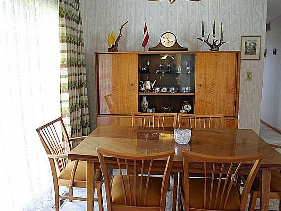 One owner home, beautifully maintained! All natural woodwork, hardwood floors, some carpeted. bath off master bedroom. New french doors open from dining room to patio & private backyard. Formal dining room plus eat in kitchen, all appliances stay. Full bath off master bedroom....& then there is the finished basement! Take a step back in time as you see the retro wet bar with stools, adjoining family room, full bath w/shower plus loads of storage cabinets. One year warranty! Utilities gas $40.00 & electric $46.00, keep in mind owner away in winter but utilities always on.