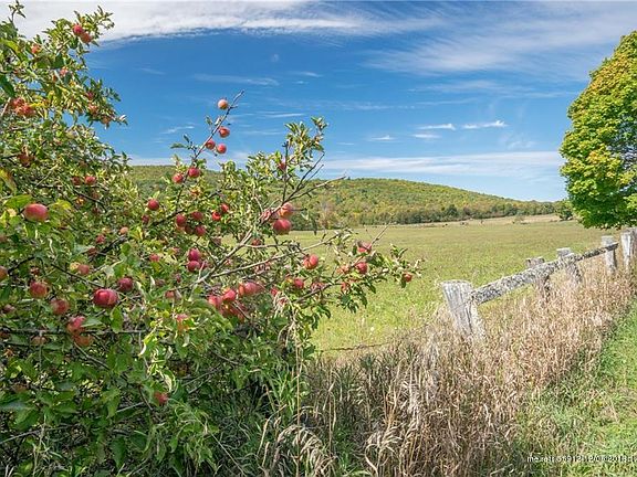 The New England Farm home is a turn of the 19th century farm home with 3 BRs and 1 -1/2 BAs. The first floor of the home has a large kitchen adjacent to an open dining area. A walk-in pantry is located next to the kitchen. The large living room has incredible views of the surrounding Dixmont Hills. Two hearths with wood stoves are located in the living and dining rooms. Upstairs are the bedrooms, a full bath, and the laundry room. The home has been updated over the years with windows, doors, flooring, wiring, and other improvements. It still needs some cosmetic improvements but the structure of the home appears sound. It is set on a granite block foundation. An attached 1 car garage provides vehicle storage. The two barns are located on Old County Road about 2000 feet from the home.