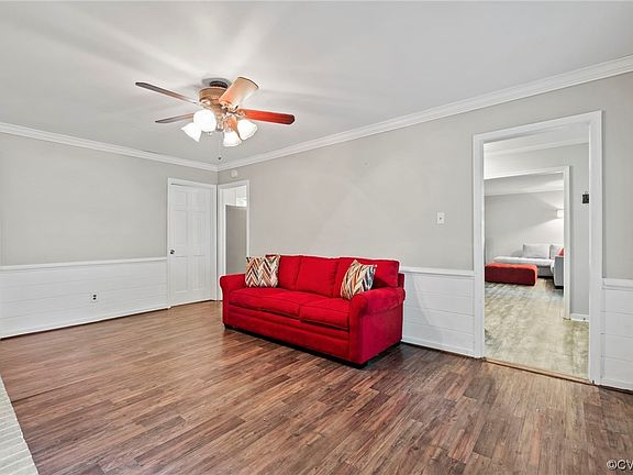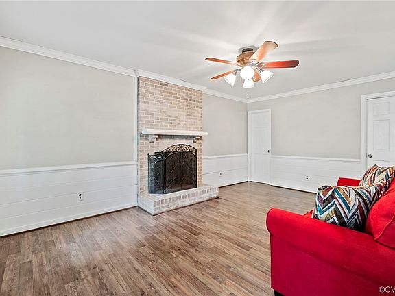 - Description: LVP, Fireplace, wainscoting, crown molding, fan