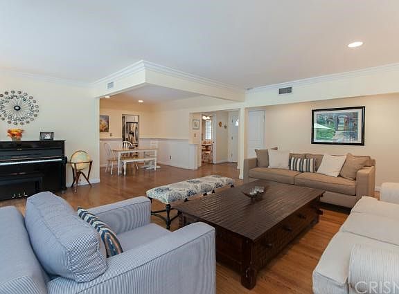 Reflecting a graceful way of living, this gorgeous Calif Ranch Trad combines classic refinement w/an inviting design. Located near the end of a cul-de-sac in the acclaimed Lanai Ele Dist, the home has been updated w/great attention to detail. Hardwood flrs, bead board, exposed beamed ceilings, & crown moldings are a few of the architectural elements that enhance this sun filled home. Designed with an ideal flow for entertaining, the open concept floorplan includes a liv rm w/French drs, dine rm, & a den w/flagstone fireplace & built-in cabinetry. The gourmet kitchen was designed for stylish functionality & features granite cntrs, custom cabs, a custom banquette, built-in wine rack & stainless apls that include a Viking Range. The spacious master ste has a lg custom walk-in closet & a spa quality marble bath w/multi-jet shower & dramatic free standing soaking tub. California?s relaxed outdoor lifestyle is showcased in this wonderfully private yd which offers an extensive flagstone patio, sparkling pool, infinity edged spa w/water feature surrounded by towering mature trees. Adl amenities: 3 generous secondary bedrms, Nest thermostat sys, multi-zoned Sonos wireless audio sys & custom integrated home entertainment sys, circular drive & amazing curb appeal.