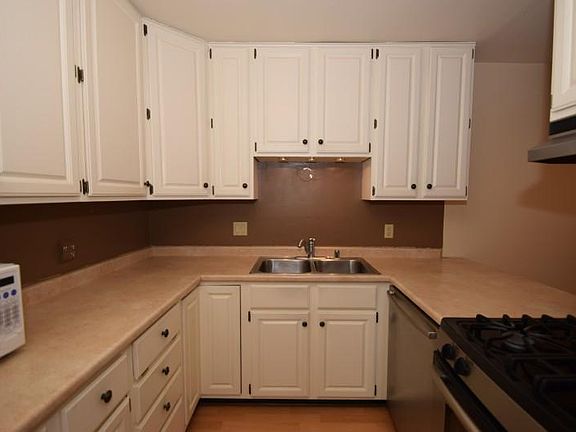 Sought after ranch unit in beautiful Rivers Edge. Laminate ''wood'' flooring throughout, both baths completely remodeled w/granite countertops & tile floors, white painted kitchen w/newer range/hood & pantry, MBR w/new window, walk-in closet & adjacent PR, BR #2 w/wall of closets. Screened in patio/porch. Very well maintained complex w/clubhouse & outdoor pool. Interior courtyard, common laundry rm, storage rm, underground parking (Spot #2). Condo dues include heat! Sorry, no pets allowed in this building