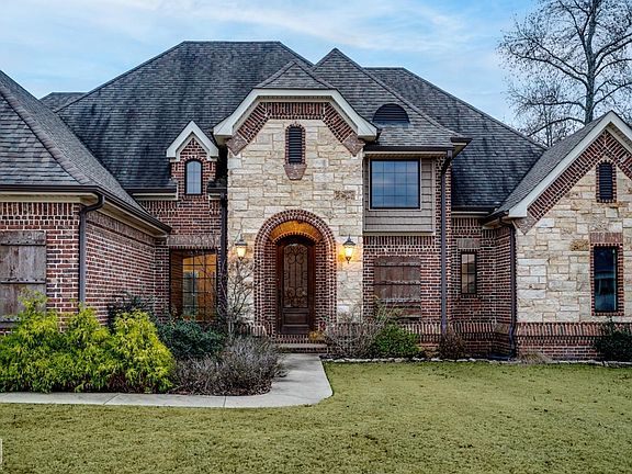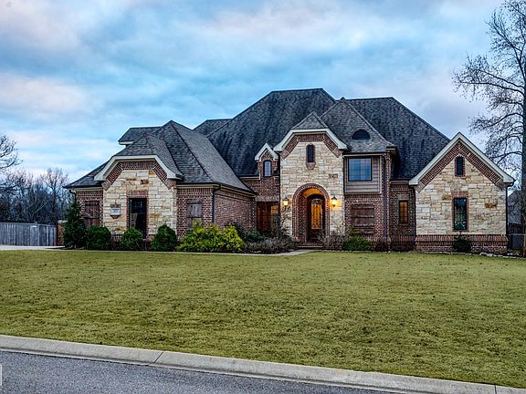 Welcome to this stunning home in the highly sought-after Barrington Park Subdivision in South Jonesboro! From the moment you arrive, the gorgeous exterior will captivate you, with its unique blend of red brick and light grout, stone accents, and a beautiful roofline. The intricate brickwork and large windows create a striking and timeless curb appeal. A charming brick archway leads to the welcoming front door, setting the tone for the exceptional details found inside. Step into the two-story entryway, where a beautiful staircase, balcony with wrought iron railing, and plenty of natural light greet you. The living room is a true showstopper, featuring custom woodwork on the ceiling, built-ins flanking the fireplace, and a perfect balance of comfort and elegance. The kitchen is equally impressive, with detailed cabinetry, ample counter space, and a copper farmhouse sink that adds a touch of sophistication. The main floor boasts a primary bedroom suite complete with a connected flex room, ideal for a home office or cozy sitting area. The suite also includes a spacious tile shower, a walk-in closet with natural light, and plenty of privacy. A guest bedroom and bathroom are also conveniently located on the main floor. Upstairs, you'll find two bedrooms connected by a Jack-and-Jill bathroom, plus a large bonus room perfect for a playroom, home theater, or extra storage. The backyard is designed for relaxation and entertaining, with a covered patio that offers a peaceful retreat. The garage is a modern homeowner's dream, featuring an EV charging station that conveys with the property. This home combines timeless style with modern amenities and thoughtful design, Don't miss the chance to make it yours! Schedule your showing today.