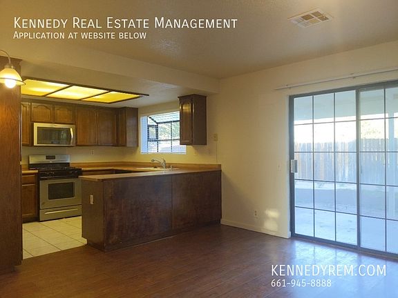 This single-story home is convenient to downtown Quartz Hill with many excellent choices for dining, take-out, and services nearby. The living room has a brick fireplace and hard wood floors. The spacious kitchen offers a breakfast bar, and stainless steel appliances including a stove, dishwasher, and microwave. The primary bedroom has a walk-in closet and en suite bath. The attached 2-car garage has direct access to the interior, washer/dryer hook-ups, and an automatic garage door opener. The front and back yard are landscaped and fenced, with landscape maintenance included. Ample RV parking is included and convenient to the kitchen for loading and unloading. Small pets are negotiable.