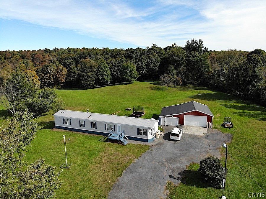 Well maintained 3BR, 2 full BA single wide home situate on 9.06 acres of land. This spacious home has a large master bedroom/bathroom has plenty of closet space. Enjoy the pellet burning stove in the winter months. You will love the large eat in kitchen and breakfast bar, perfect for entertaining or those large family get togethers. You will have no problem finding space for all of your toys in the the 24 x 31 garage, a portion of which is heated. Outdoor enthusiasts will love this property for as there is plenty of wildlife around. It is near snowmobile and ATV trails. Close to Lake Ontario for a day of boating or fishing. Great place to make your home or just a place to come enjoy all of what the 4 seasons have to offer here. 2022-10-19