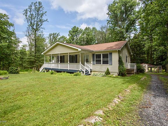 BRING THE WHOLE FAMILY! 3 Bedroom, 2 bath Country Ranch home, with a separate extended family apartment, sits on over 6 PRIVATE ACRES, with a small pond. Located next to 350 acres of State game lands & just ¼ mile to Appalachian Trail & minutes to Blue Mt Ski Resort [including Skiing, Bike trails, zip lines]! Master Bedroom opens to deck & has its own bath. Cozy up by wood stove for movie night in the large finished walk-out basement. Entertain on the multi-level deck and enjoy the abundant wildlife from the rocking chair front porch. The 500 sq ft Apartment has a separate entrance, and its own kitchen, bath, pellet stove & large screened porch. 2+ car garage with wood stove & workshop. Low Taxes! Easy commute to Valley, Poconos, NJ. COME ENJOY THE QUIET LIFE!!