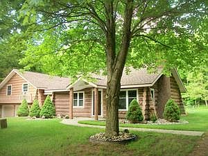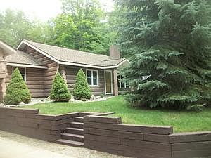 Perma log split level ranch with a "Wow" factor. Meticulous home that is second to none. 2 bedrooms, possibly 3 if desired. Open floor plan with kitchen and dining room. Stainless steel applicances. Tiled floors in walk area. Woodburner insert in fireplace. Both bedrooms upstairs and a den area that could be the 3rd bedroom. Laundry off of kitchen Garage has a work, storage room on one half. Beautifully landscaped. Located in Lost Lake Woods club with all it's amenities. Call agent for a packet all about the club.