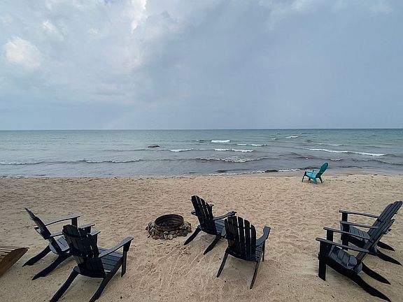 Live on Lake Huron all year round! Watch the beautiful full moon over the water while you're sitting in the hot tub or enjoy coffee on the patio watching the sunrise. The open floor plan makes it easy to mingle with your guests. Sitting in the living room you are able to overlook the majestic lake as there are windows on three sides of the room. The master bedroom has a bay window that overlooks Lake Huron as well. Plenty of room in the pole barn to store your boat or anything else you would like. This is a beauty!