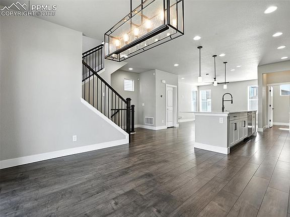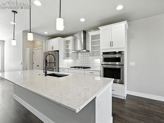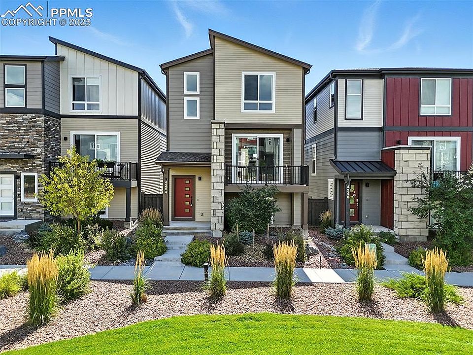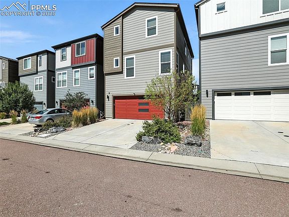 Welcome to this stunning modern home in the highly sought-after Midtown at Cottonwood Creek community, located in the desirable Academy District 20 schools. Thoughtfully designed with style and function in mind, this residence offers 3 spacious bedrooms, each with its own private en-suite bath, plus an additional half bath for guests. With over 2100sqft, a loft, and one of the larger floor plans in the community, there’s room for everyone to live and entertain in comfort. The heart of the home is the show-stopping kitchen, featuring extensive builder upgrades: premium KitchenAid appliances including a gas cooktop and microwave/oven combo, level 3 quartz countertops, backsplash, and elegant glass-front upper cabinets. The open-concept design flows effortlessly into the living and dining areas, creating the perfect space for gatherings. Upstairs, the primary suite offers peaceful views overlooking the beautifully landscaped green space, which can also be enjoyed from your private balcony located off the dining room. Additional highlights include central A/C, a loft for flexible living space, and an attached 2-car garage with direct access to a fenced side yard, ideal for quickly letting pets out. Nestled in a beautifully maintained community with expansive green space, this home is just minutes from parks, trails, and shopping. It’s the perfect blend of convenience, luxury, and modern design.