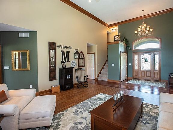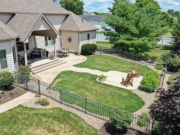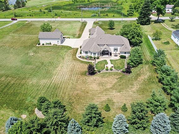 Wow! Move right into this custom built home on over 2 acres in a great location. The vaulted kitchen is a chef's delight with granite countertops, stainless steel appliances, hardwood floors and opens to bayed eating area with wall of windows and vaulted great room with gas fireplace. The formal dining room has a built-in hutch with granite countertops and glass shelves. The formal living room has 10+ foot ceilings and crown molding and gas fireplace. There is a spacious first floor den with glass french doors and vaulted ceiling. The first floor owners suite has a tray ceiling, deluxe bathroom with double vanity, soaking tub, tiled shower and walk-in closet. An additional bedroom with full bathroom, laundry room with pet shower and half bath complete the first floor. 2nd floor has an additional living suite with bedroom, living area, kitchenette and full bathroom. Covered back porch and patio perfect for relaxing or entertaining! There is a 3 car attached garage and an additional detached garage. Whole house generator. Call today!