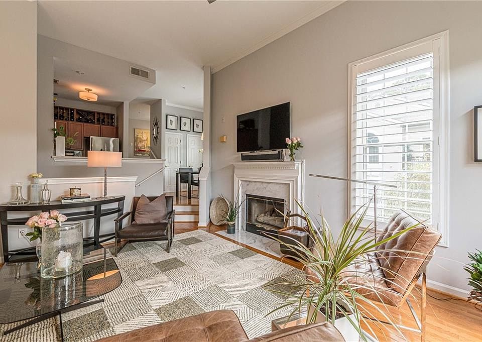 THE PERFECT STORM: Resort Style Living + Light-filled Top End Townhome + Serine Buckhead Location. Feel pampered when you arrive home to an updated multi-level townhome in a gated Buckhead community within a luscious tropical setting. The spacious open floor plan also features hardwood floors in the main living area, marble-front fireplace, 11ft ceilings, with French doors that step out onto the balcony, quartz kitchen countertops, SS appliances, double pantry, separate dining area, plus a bonus den/office space. This home also includes a large primary bedroom with a walk-in closet, large windows throughout that provide an abundance of natural light, and a rare single-car garage with tons of storage. The unit’s PRIME location within the well-manicured community is nestled in the treetops for extra privacy. WAIT, there’s MORE! The amenities offer 2 pools, a great clubhouse, fitness center, dog park, grilling stations, and a tranquil rock waterfall. Conveniently located near Vinings Jubilee, The Battery, Cobb Energy Performing Arts Center, with lots of shops and restaurants nearby, plus easy access to Midtown. This may be THE ONE that you have been looking for…