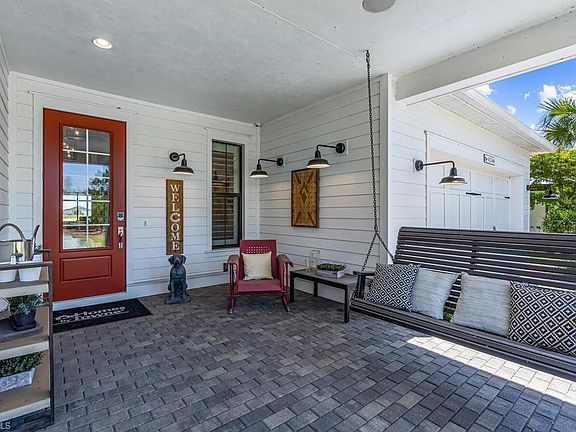 H.15908 Come discover Babcock Ranch, America's First Solar powered community! Barely lived in Lakefront Sterling Model Home built by Homes by Towne. Professionally furnished and decorated with farmhouse decor. Relax on the front porch swing or at the fire pit in the back yard with stunning lake views. Brick pavers in both front and back.There are many upgrades in this home, such as the soaring ceilings, amazing wall and ceiling detail throughout, natural gas, tankless hot water heater, wall oven, full coverage irrigation.... and many more!