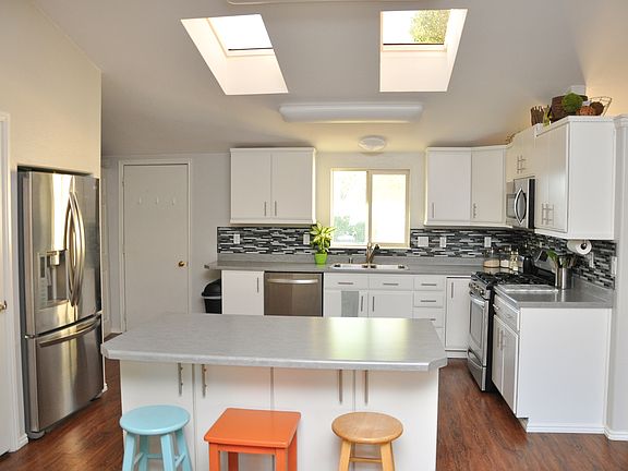 A Desert Oasis! This one acre nicely landscaped lot has beautiful curb appeal. Located at the end of a secluded culdesac makes this location peaceful and private. Very well taken care of property has room for many hobbies. There is a storage container on the property and 3 small storage bays attached to the garage. Plenty of room for animals or a shop with electric already plumbed for it. The home has an open floor plan with a lot of light coming from large windows and many skylights. A large kitchen has multiple storage options with a lot of cabinets and two pantries. It also features newer stainless steel appliances and an updated look. You will find 2 spacious living rooms. The master suite is full of his and her closets, separate vanities, a soaker tub, and is secluded from the other bedrooms. This home is just 2 minutes to town with quiet country serenity and privacy. You'll love it here!