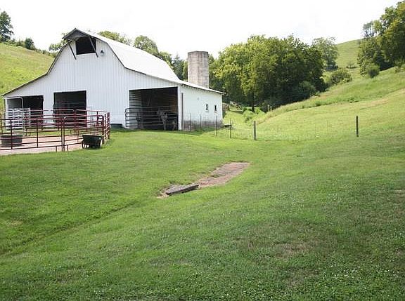PRICE ADJUSTMENT!COUNTRY QUIET! 27.7 AC,POND! Large pretty brick house/full fin basemt,huge barn w/electric/water+3 outbldgs,fenced/cross fenced/pond/county&well water,hay/rolling/hill land,2 utilities,3610 sqft,cabinets/bar/kit down,storage,2 cov porches,double carport,lovely setting,sits off road,wildlife,treed lot,bring the animals!