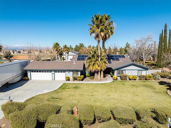 Escape the ordinary and step into your own private paradise with virtually eliminated electric bills thanks to a super-sized solar system all in this custom single-story estate! Located in West Lancaster, spread across nearly an acre, you'll find a meticulously designed living space, a sparkling pool & spa, a 2,000 sq. ft workshop, and lush landscaping - everything you need for luxurious living and endless entertainment. Inside, warmth & elegance greet you. Brick accents frame the double entry, leading to formal living & dining areas perfect for grand gatherings. Cozy fireplaces add ambiance, while the adjacent kitchen boasts stainless steel & a breakfast nook. Unwind in the primary suite featuring a sitting area with a fireplace and a luxurious remodeled bathroom with dual sinks, granite counters, a multi-head shower, and a separate spa tub. Plantation shutters, beautiful wood flooring, and thoughtful accents add sophistication throughout. Step outside to your backyard oasis. A massive covered patio with a built-in BBQ & TV lets you host al fresco gatherings. Take a dip in the pool & spa, roast marshmallows at the firepit, or relax amidst the landscaping & orchard. Need space for hobbies? The expansive 2000 sq foot workshop with 220-volt electric & a paved driveway accommodates everything from woodworking to storing multiple RV's. This isn't just a house; it's a lifestyle. It's more than bricks & mortar - it's creating memories, fostering connections, and experiencing the true meaning of home. . Schedule your private showing today and discover your Oasis! #CaliforniaDreamLiving with #LuxuryLiving, a #PoolsideParadise, a #WorkshopGoals haven, and a #BackyardEscape.