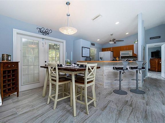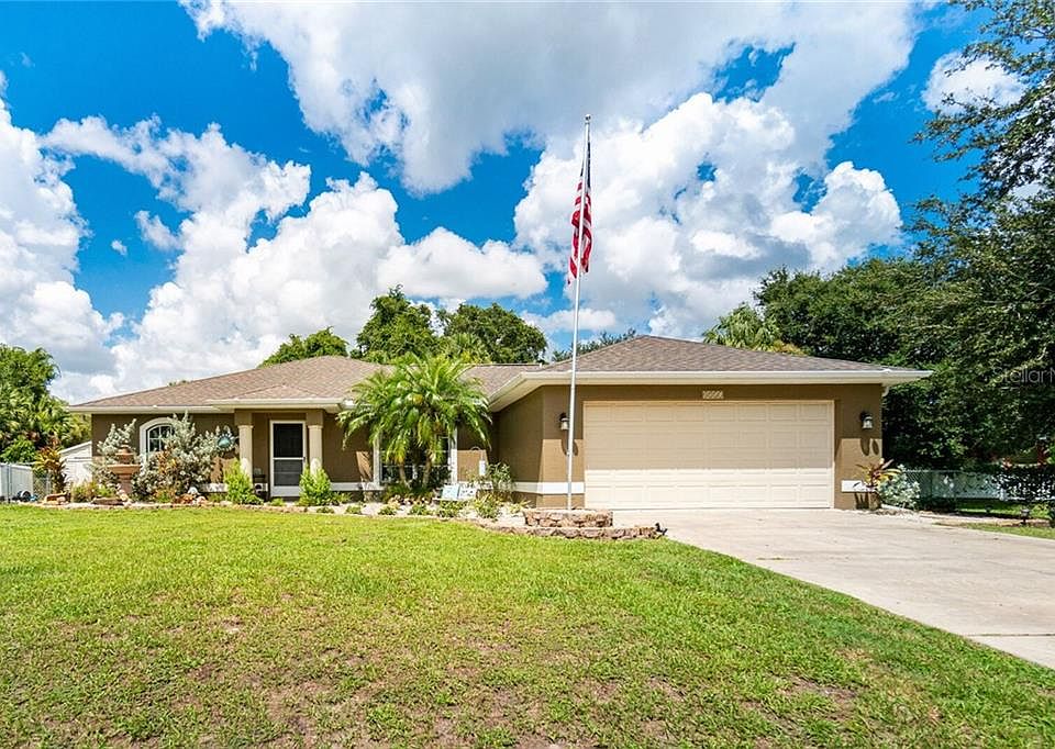 Honey stop the car! Come see this 3 Bedroom, 2 Bathroom + OFFICE home featuring new porcelain tiles throughout and warm wood-look laminate in the home office. This move-in-ready home has been newly UPDATED, freshly painted, and a NEW AIR CONDITIONER installed in 2019. This home is centered on a DOUBLE LOT and is fully FENCED, providing a private spacious yard on all sides with enough room for a pool, RV, and boat with room to spare. This home features an open floor plan with split bedrooms, breakfast bar, and inside laundry room. The kitchen overlooks the main living area with French doors leading to the large screened lanai perfect for entertaining. Do you need a private space for your grown teenagers or the in-laws to live? There is an ADDITIONAL LIVING AREA - the garage has been converted to a 4TH BEDROOM which is set up like a second master bedroom, complete with a fridge and kitchenette. This can also be a theater room, man cave or easily converted back to a fully functioning garage. Enjoy additional outdoor living with an oversize patio extension off the lanai, great for eating outside, grilling or sunbathing. Hurricane Shutters and front planters feature a micro drip system for all landscaping. Close to restaurants and shopping, but on a street with low traffic for peaceful evenings at home. What are you waiting for - make an appointment to see this home today before it is too late!