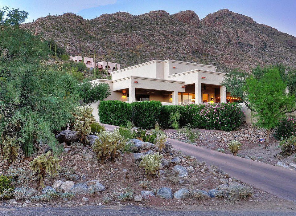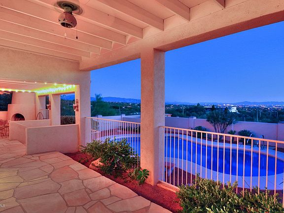 For more information on this property, contact the Listing Agent, Peter DeLuca at (520) 977-4770 or PeterDeLuca@realtytucson.com. Enjoy fabulous city light views from this beautifully remodeled hillside home that features a huge eat-in island kitchen with gorgeous alder cabinets, lots of granite counters and stainless steel appliances. The soaring ceilings, 8 patio doors and clerestory windows capture the awesome city light views and 3 mountain ranges. Wonderful Master Suite with double sinks, Jacuzzi tub and sliders to the amazing patio area You will be awestruck by the size of the flagstone patio with fireplace and BBQ overlooking the newly remodeled pebble tec pool. Everyone will enjoy the large media room/game room. You will love the separate guest house with beautiful kitchen, separate bedroom, full bathroom and large living area. But know your guests may never want to leave!