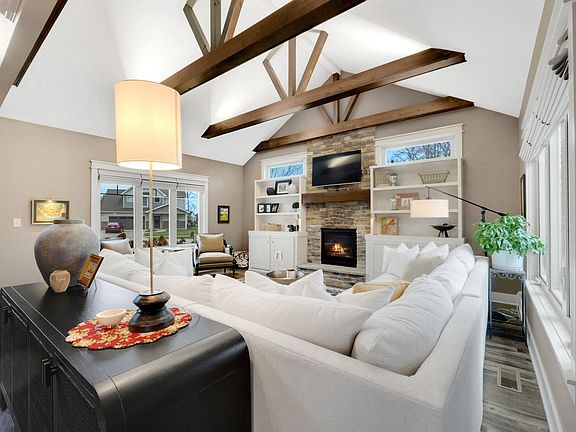 - Cathedral Ceiling(s), Ceiling Fan(s), Beamed Ceilings, Walk-In Closet(s), Countertops-Solid Surf, Crown Molding, Kitchen Island, Open Floorplan, Main Level Bedroom Suite, Custom Cabinetry
