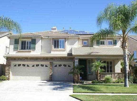 Absolutely gorgeous inside & out!! Pride of ownership defines this home as it is turn-key & ready for you to move in. Located in the prestigious Eagle Glen Community, you are walking distance to parks, shopping & the elementary school. With having one of the best open floor plans in the community, you will love having friends and family over. The home boasts tons of upgrades including plantation shutters on all the windows, tile, carpet, & hardwood flooring, crown molding, large spacious kitchen with many upper and lower cabinets, granite counter tops with designer tile back splash, large kitchen island, stainless steel appliances, recessed lighting, laundry room with sink, large dining, family, & living room, a spacious loft, large bedrooms, 2 door entry master bedroom with large walk in closet, huge bonus room that has a closet and so much more. The front & back yard are fully landscaped and well taken care of. With the backyard being surrounded by palm trees as well as having grass for pets and kids to play, a spa, and a basketball court, kids and parents alike will love being here. This house will also save you money with its non-leased solar panels and duel AC units. Words and pictures do not do this home justice, come and see for yourself!
