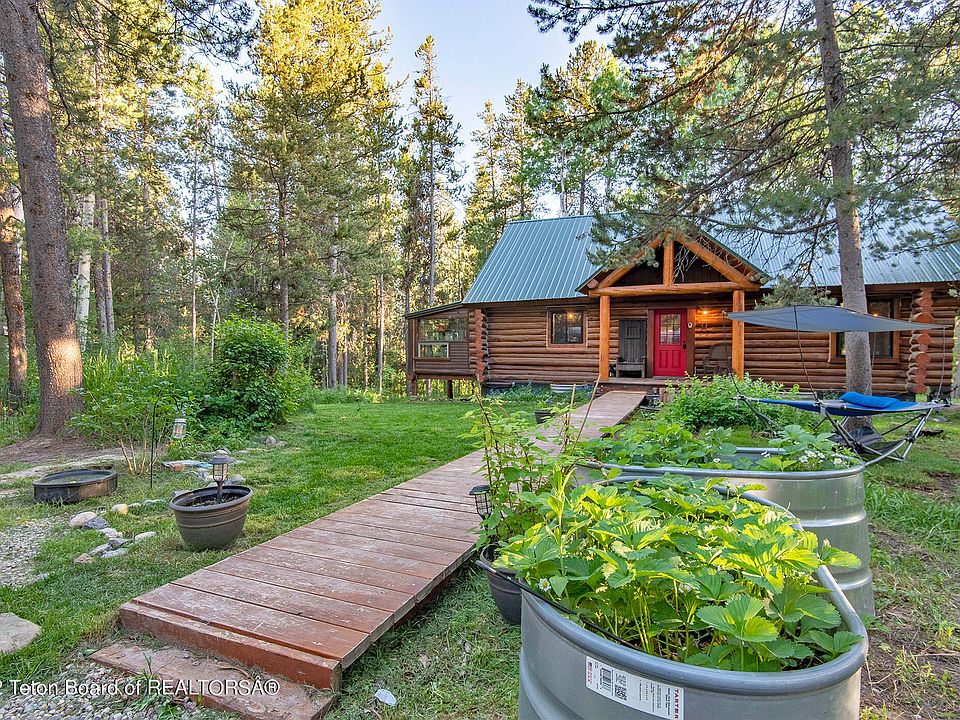 This quintessential Wyoming log cabin is snugly nestled out of the wind in a beautiful pine and aspen forest. Enjoy the quiet & private end of the road location adjacent to subdivision open space and further bordered by thousands of acres of National Forest. The area is a peaceful sanctuary for wildlife and human residents alike and is frequented by moose, deer, black bear, fox, hawks, owls, and so many other animals. The property is an outdoor enthusiasts dream come true and features easy access to snowmobile trails, mountain bike trails, hiking trails, and backcountry skiing. Many trails can be accessed without any driving required. They are literally out the back door! The cabin has a light and bright sunroom, and a loft that is perfect for an office or additional family room. The wood stove provides warmth on cold winter days and heats the whole upstairs easily. Enjoy a hot sauna on a cold winter day with included infrared sauna with light therapy. The wrap around deck offers a beautiful spot for outdoor relaxation and entertaining. The cathedral ceiling in the main living area adds a spacious feel and large windows enjoy beautiful views of the surrounding forest! Enjoy the freedom to add an accessory dwelling unit and/or garage with living space above! The sellers have done many recent upgrades including egress windows in the basement bedrooms, new drywall and insulation, and new engineered wood flooring the main living area.