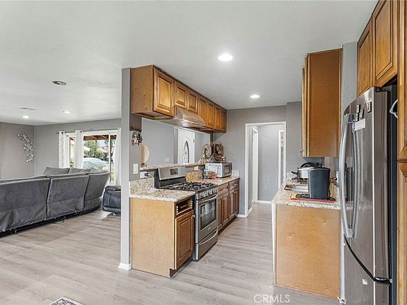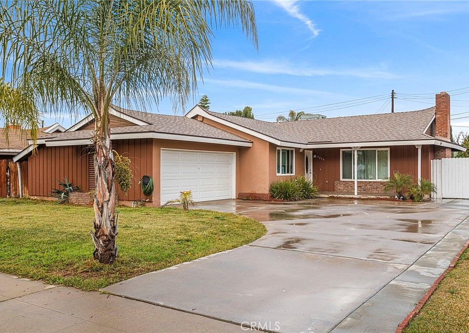 Beautiful 3 bedroom, 2 bathroom home with master bed and bath. The kitchen offers updated granite counters tops, wood cabinetry and laminated flooring. The cabinets stretch into the dining area where there is a whole wall of additional storage. The living room features laminate flooring, a lovely brick fireplace and a whole wall of sliding glass door and windows looking out to the covered patio. The spacious backyard has room for a future pool. The 2 car garage is attached and has an automatic door opener. The home has dual pane windows throughout and has central air and heat. Come out and tour this home today. Call for an appointment.