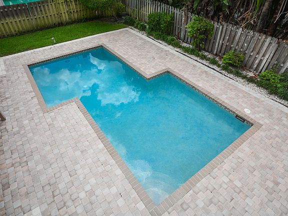 Don't miss this one! Unique tri-level floor plan in desirable Colonnade. Soaring ceilings in living areas with coral wood burning fireplace & white-washed wood ceilings. Kitchen features granite counters, wood cabinets, island with cooktop and breakfast area with sliders to patio/pool. Two bedrooms on second level with shared bath, master & an additional bedroom with bath en-suite on top floor. All bedrooms have laminate flooring, no carpet. Master bath has been renovated with freestanding tub, huge walk-in slate shower & double sinks. Master also has balcony overlooking pool & backyard. Spacious fenced backyard with oversized pavered patio and pool with babygate. Colonnade has Boca Tierra park within community.