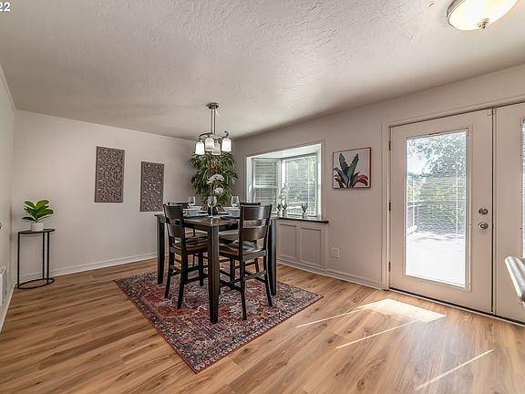 Inviting South Eugene home with great separation of space. Hardwood & luxury vinyl flooring throughout. Updated kitchen with dbl built-in oven, granite counters. Through french doors off dining room, don't miss the view of Spencer Butte from large Trex deck. Spacious lower level features ductless HP, bd/bth, laundry, large room + bonus room w/skylights. Through french doors off bonus room, enjoy a covered patio that overlooks mature landscaping w/udrgrnd sprinklers, raised garden and shed.