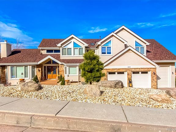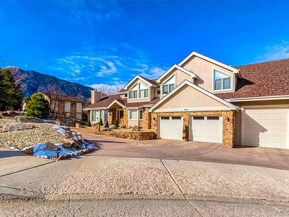 Absolutely stunning 6,400+ sqft custom home in award-winning D-12 schools, nestled on .53 beautiful acres with breathtaking panoramic mountain and city light views! Remarkable architecture, soaring beamed cathedral ceilings, four fireplaces, five living and family areas, exquisite gourmet kitchen with new slab granite and stainless appliances, spacious formal dining area, luxurious master retreat with private deck, fireplace, and spa-like bath, expansive walk-out lower level with wet bar, and premier outdoor living spaces including six Brazilian redwood decks, gazebo, and a tremendous hot tub all with incredible views showcase this magnificent home. Other home features include new Pella windows and new furnace (2019), incredible RV garage with loft storage, beautiful stone and new stucco exterior, xeriscape yards, and a tremendous private cul-de-sac location. Near the world-class Broadmoor resort and Cheyenne Mountain State Park, this magnificent home is not to be missed!