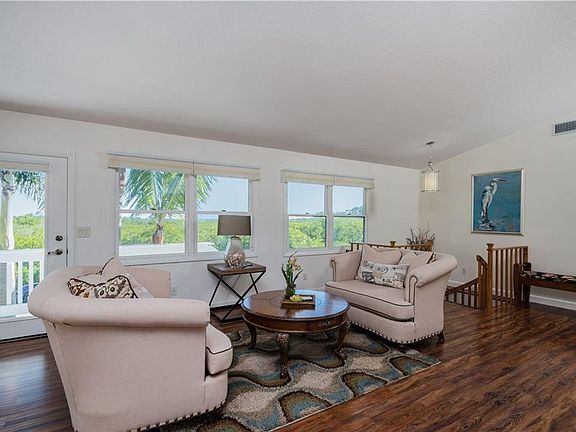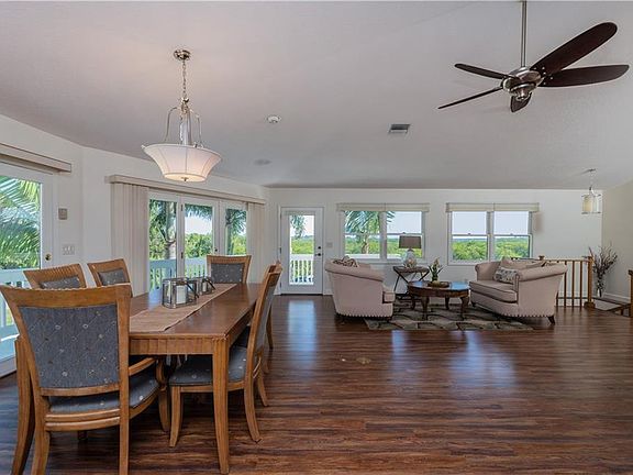 FANTASTIC SUNRISE AND SUNSET VIEWS ON SOUGHT AFTER WATERFRONT -located on a quiet - almost private - street that is buffered by Myakka conservation land. You can have it all! Bask in the warmth by your pool under a screened lanai that opens into your family room. The pool area looks over the Bacchus Waterway and your dock. The home is split on two levels. Upstairs is the master bedroom, second bedroom and living room/dining room/kitchen area. The kitchen is an open and friendly workspace designed for entertaining. The master bath is a relaxing getaway with an over-sized tub. Bathrooms upstairs are beautifully tiled and updated. The waterfront and natural preserve views are spectacular. Downstairs, the family room opens onto your pool and lanai. There is also a shaded outdoor living room area. Ideal living if you want privacy for your guests and family. The two bedrooms downstairs are separated from and private from the upstairs. The updates and improvements on this home offer you comfort and style. Live on the water and work in the cloud! Located near three international airports - Tampa, Sarasota and Ft. Myers - as well as a regional airport in Punta Gorda, you can easily commute to and from anywhere.