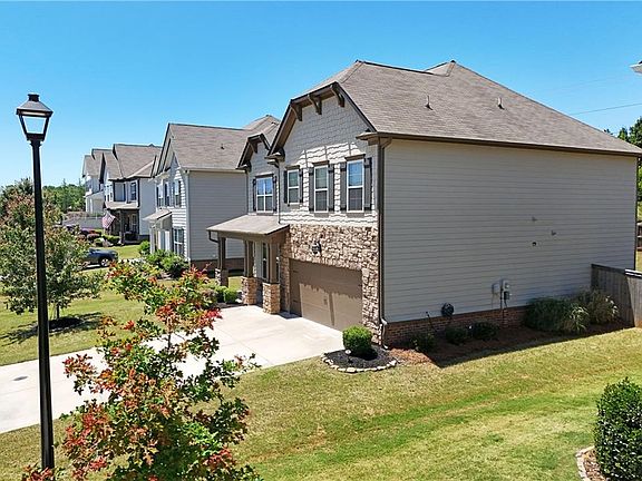 Great house that is priced to sell and move-in ready! This beautiful DR Horton-built Iberville 5/3 plan features a front porch and a fully fenced private backyard in the popular Bramblett Grove subdivision. Located in a scenic area with sought-after schools, this home is also conveniently close to shopping, restaurants, GA 400, and HWY 369. The community offers exceptional amenities, including a clubhouse with a catering kitchen, sidewalks, a pool with a children's area, tennis courts, and a playground. This home is situated near the front of the subdivision, making it an easy walking distance to the pool and other amenities. As you enter this beautiful, newer home, you'll find a flex room off the entry foyer. The beautifully updated kitchen features white shaker-style cabinets, granite countertops, a tile backsplash, and stainless steel appliances. The family room includes a fireplace with a black slate surround. On the main floor, there is one bedroom and one full bath. The staircase boasts beautiful iron railings. Upstairs, you'll discover the master bedroom and three additional spacious bedrooms, another bath, and a large loft/flex area. The generous primary suite includes a double vanity, a large shower, a private toilet area, and his-and-hers closets. LVP flooring runs throughout the downstairs and in the hallway and loft area upstairs, while new carpet has been installed in the master bedroom and on the stairs. The home is also wired for a hot tub in the backyard and has a wooden deck already in place for one!