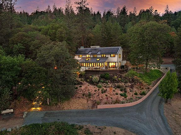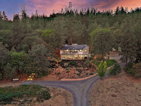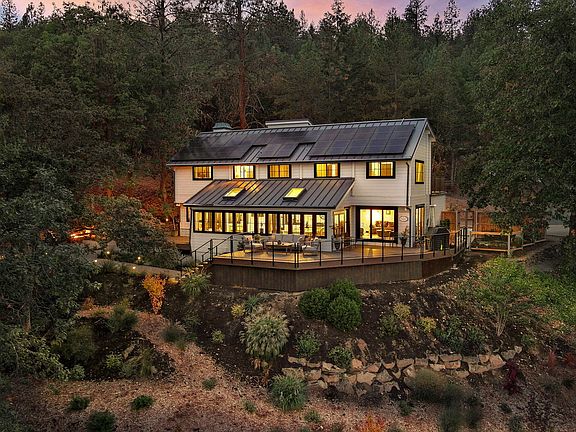 Prepare to be wowed by the breathtaking panoramic views from every corner of this stunning home, nestled in a serene and sought-after location just outside Jacksonville in Wine Country Heaven. Combining modern luxury & natural beauty, this property offers the perfect balance of tranquility & convenience. Close to Rellik and Hummingbird Wineries! Expansive windows & glass doors invite the outdoors in, creating bright, spacious living areas that flow seamlessly to the outdoors for entertaining & relaxing. The spacious chef's kitchen features a massive quartz counter island for meal prep & dining. The primary suite is a true retreat & the bathroom boasts the highest-end, European-inspired plumbing & design, offering a spa-like experience. The beautifully designed xeriscaped native plant landscape by Sager Design, providing a peaceful space, while taking in those spectacular views. Plus, a newly built pool deck adds the perfect touch for sun soaked relaxation.