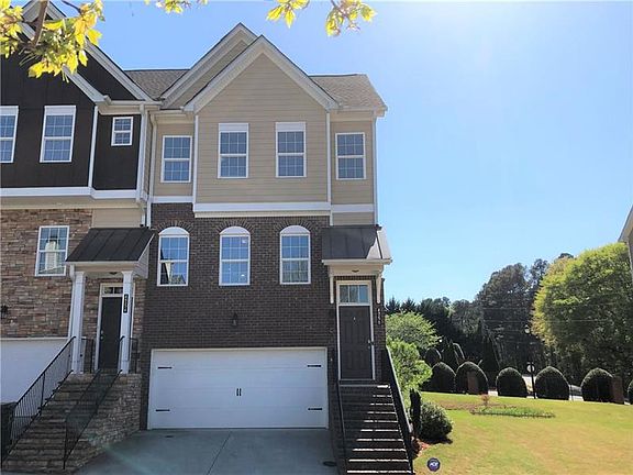 Wonderful, end unit townhome that is move-in ready. This 4 bedroom, 3.5 bath home features hardwood floors throughout the main level. Completely open concept living space from the oversized great room to the kitchen. Great room is larger than in many units. Kitchen features an island with bar seating, granite countertops, stainless steel appliances and rare 42 inch cabinets for plenty of storage. Upstairs you will find the large master suite with separate shower, double vanities and walk in closet. There are also 2 additional bedrooms and a full bath on this level. On the terrace level, there is an additional 4th bedroom and full bath. This room could also be used as a bonus room, media room, office or playroom. In the garage, notice the bonus of having 2-50 gallon hot water heaters. Beside this end unit, there is a large level grassy area that will be perfect for children to play, family gatherings, etc. Conveniently located near shopping and dining in Buford. Come see this great townhome in a gated community.
