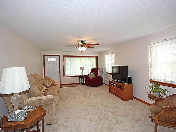 Removing paneling, adding drywall, opening a wall and adding new carpeting has made this home ready for a new owner!! As you walk in the front door, the large living room is open to the dining room and has loads of light. The dining area is connected to the kitchen, which has oak cabinets, and all appliances stay! Three bedrooms have great closets and two have new carpet. One bedroom has a built-in desk/make-up center. There's a breezeway for storage with a pull-down stairs to the attic. The oversized 2.5 car has a storage loft. The "Wizard of Oz" cellar contains the furnace and water heater. This all sits on a half acre lot, part of which is fenced for children or pets. Roof 2003, Windows - 2006, furnace and air 1992.