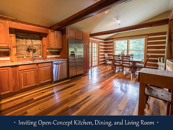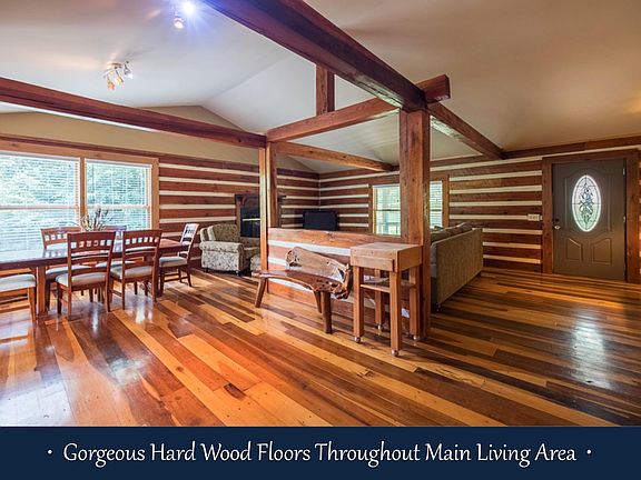 Freshly painted * Huge front porch & huge back deck * Poplar logs * Updated cherry cabinets with granite tops and stainless appliances * Updated tile walk-in shower * Travertine tile in baths * Wide plank wood floors * Newer HVAC * Walk-out basement