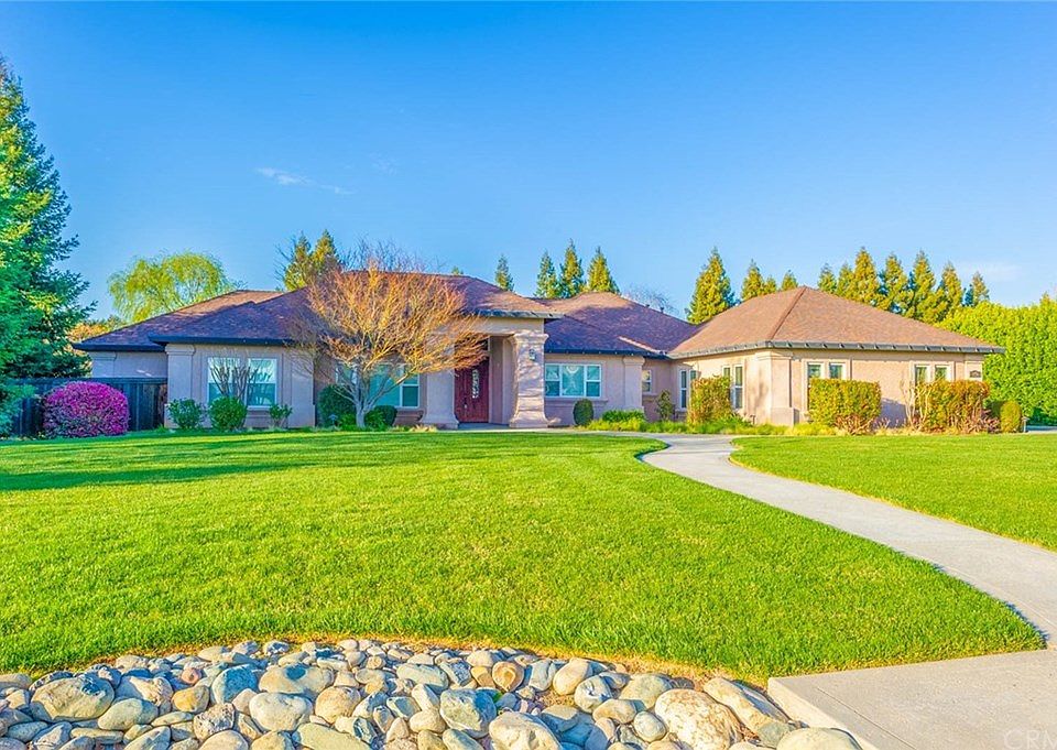 Looking for the ONE? Guide yourself through this custom built home with MASSIVE POOL, sitting on an ACRE of land with our 3D virtual tour & be ready to fall in LOVE. Single level, open floor plan with plantation shutters, 10 ft ceilings & solid paneled wood doors throughout. The SPACIOUS living room has a vaulted wood plank ceiling, built-in entertainment center & cozy rock surround fire-place. This flows into the designated dining area and kitchen. The kitchen showcases timeless wood cabinetry, granite countertops, a two level island with 6-burner propane cooktop, a paneled refrigerator, & wine storage. Mother-in-law floor plan with a large bedroom & bathroom on one end (with exterior access to the backyard) & two additional bedrooms, two full bathrooms and a French door led office with built-ins on the other end. The master suite includes a dual vanity, ADA compliant ensuite with a doorless tile surround walk-in shower. The swoon worthy backyard is what will seal the deal. Partially covered patio area with exterior fans and speakers, extends out toward the MASSIVE oversized lap pool with custom turtle tile work. This is surrounded by a lush lawn, established plants & trees and a garden area bordering the back end of the yard. There is a side-facing attached three car garage, interior laundry with utility sink, whole house fan and RV access. Newer construction, located in the coveted North Chico/Garner area. A place where you will LOVE to entertain, and never want to leave!