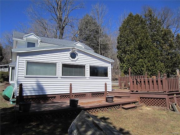 Can't get much closer to the water than from this sweet seasonal family camp. Set among a small cluster of well-maintained camps w/green views across the water - enjoy the warm morning sunshine (it's coming!) from the expansive deck just feet from the water's edge (The Blue Line has been purchased-84' of frontage). Inside you'll find a well-equipped kitchen w/tons of storage that's open to the living room & waterfront family room w/access to the deck. There's a full bath on the main level w/another 1/2 bath upstairs for the 3 bedrooms-each with big closets. The camp is Seasonal and being sold As-is/Where-is including the contents. It's situated along Tuscarora Rd & end of Lake. Rocky Lake Bottom. The roof & windows are newer the whole place is SUPER clean as it awaits it's next life w/you!