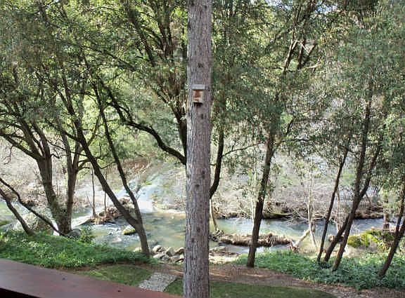 This home is and has been lovingly maintained by the owners and it shows~~ Lewis Creek frontage on a nicely landscaped lot offers the soothing sounds of the creek as well as seeing the creek from your large covered deck. Main floor has a large master suite that opens to the deck, office/bedroom, laundry and full bath plus a guest bath, great room and kitchen dining areas. Upper level has two good sized bedrooms with a jack and jill bathroom. Lower level, has a half bathroom, huge game/family room, single car garage currently used as a gym. Central vac, fully automated sprinkler system, skylight, ceiling fans. Intercom system, alarm system installed..
