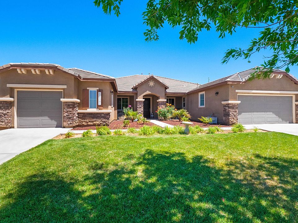This BEAUTIFUL single story Pinnacle home was built in 2008 and offers a sprawling floor plan with 3,527 square feet of living space! Situated on a corner lot with almost 1/2 acre! HUGE family room w/ fireplace adjacent to the center island kitchen w/ granite countertops, stainless steel appliances, breakfast bar and spacious pantry. The master retreat has a walk-in closet, dual sinks, large soaking tub and a separate shower. Other features include formal living and dining rooms, a MASSIVE 16 x 20 bonus room, upgraded flooring / baseboards, sizeable laundry room and ceiling fans throughout. Split 3 car garage w/ 2 separate driveways and RV access. The backyard oasis has a sparkling inground PebbleTec pool with a baja shelf and a cascading waterfall PLUS stamped concrete, large gazebo, fire pit and mature palm & olive trees! Quiet West Lancaster neighborhood this home has it all!