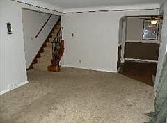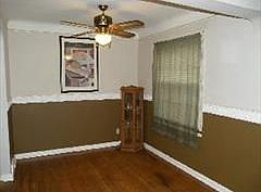 Updated bungalow. 3 bedrooms. 1 full bath. Living room with carpet. Window AC. Coat closet. Dining room with hardwood floors. ceiling fan. Linen closet. 2 bedrooms with closets. Ceiling fan. Full bath. 2nd floor: large bedroom with walk in closet, attic space, sitting room, window A/C, built in shelves. Custom window drapes and blinds. Newer carpet. Kitchen with electric stove, refrigerator, new dishwasher, disposal Semi finished-heated basement with furniture. Laundry area with washer/dryer. Work bench. 2 car garage. fenced in yard. Park like setting. Stone patio with furniture and fire pit. Free weekly lawn-care service
